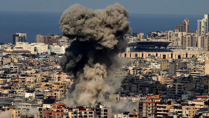 دود سیاه ناشی از حمله هوایی اسراییل به یک هدف حزبالله وابسته به رژیم ایران در جنوب بیروت