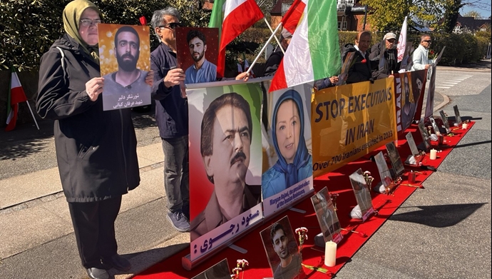 کپنهاگ - آکسیون ایرانیان آزاده در محکومیت اعدام سه شورشگر سربدار مقابل سفارت رژیم - ۷ اردیبهشت ۱۴۰۵
