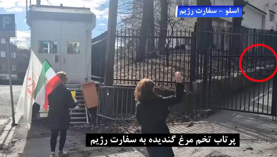 ابراز خشم یاران شورشگر در اعتراض به سرکوب و اعدام اعضای مجاهدین با پرتاب تخممرغ گندیده به سفارت رژیم در اسلو