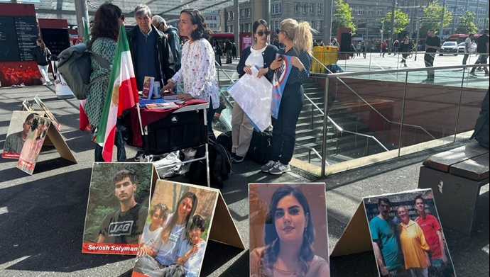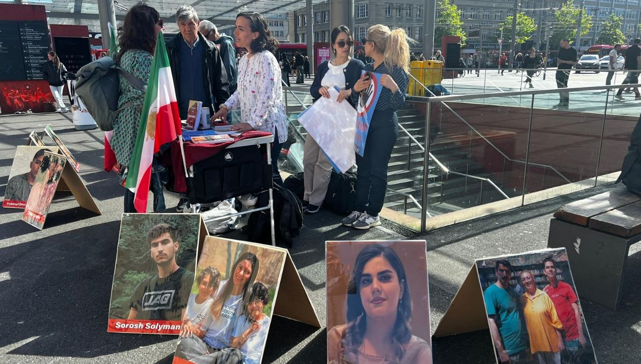 برن سوئیس - برگزاری میز کتاب توسط هواداران سازمان مجاهدین در اعتراض به اعدام زندانیان سیاسی - ۴ اردیبهشت ۱۴۰۵