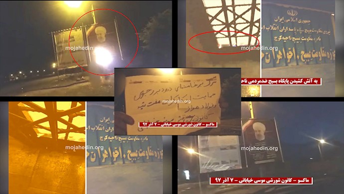 به‌آتش کشیدن بنر آخوند روحانی و مرکز سرکوب بسیج - فعالیت کانونهای شورشی در شهرهای ایران