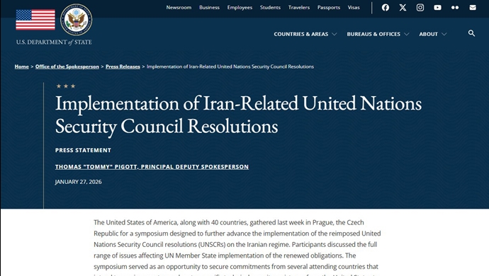 وزارتخارجه آمریکا افزود: با توجه به تهدید مداوم گسترش سلاحهای هستهیی توسط رژیم ایران و سرکوب وحشیانه معترضان ایرانی، آمریکا و شرکا بر نیاز فوری به اجرای جهانی قطعنامههای شورای امنیت سازمان ملل و اقدامات محدودکننده مرتبط با آن بر فعالیتهای گسترش سلاحهای هستهیی ایران اذعان دارند.