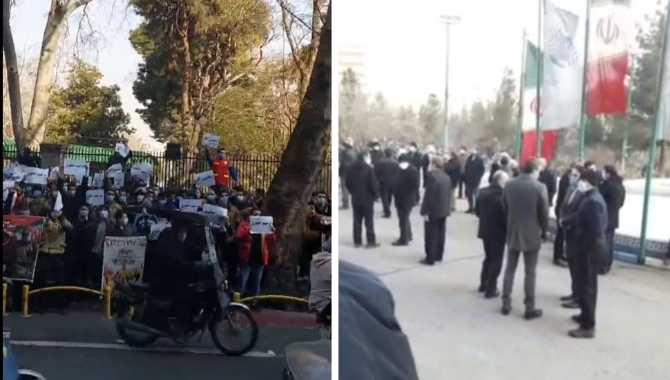 تجمع اعتراضی کارکنان رسمی مخابرات آذربایجان شرقی و آتش‌نشانان مقابل شهرداری تهران