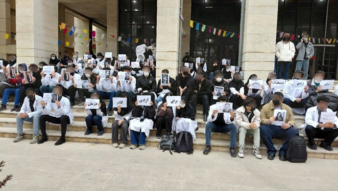 تجمع دانشجویان دانشگاه علوم پزشکی شیراز در اعتراض به بازداشت اعضای کادر درمان