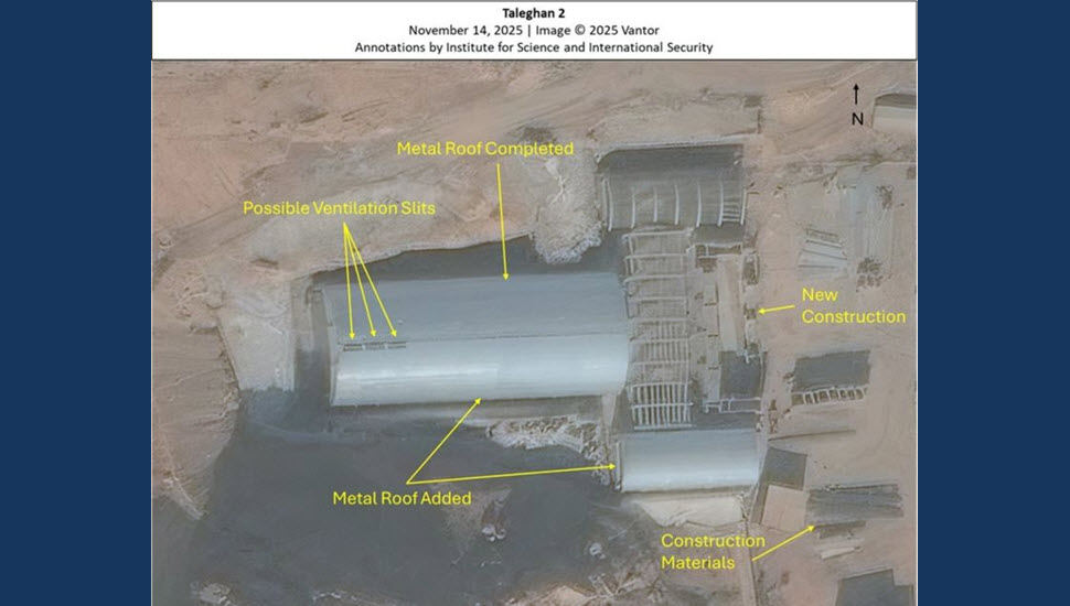 مؤسسه علوم و امنیت بینالملل(ISIS) در واشنگتن با انتشار گزارشی در نوامبر ۲۰۲۵ اعلام کرد تصاویر ماهوارهیی جدید نشاندهنده نصب یک سازه استوانهای بزرگ فلزی در سایت «طالقان ۲» واقع در نزدیکی تهران است. این سایت در گذشته یکی از مراکز کلیدی «برنامه آماد» - پروژه مخفی توسعه سلاح هستهیی رژیم ایران در سالهای ۱۹۹۹ تا ۲۰۰۳ - محسوب میشد. بر اساس تصاویر ماهوارهیی تجاری که از شهریور تا ۲۴آبان ۱۴۰۴ (۱۴نوامبر ۲۰۲۵) تهیه شدهاند: