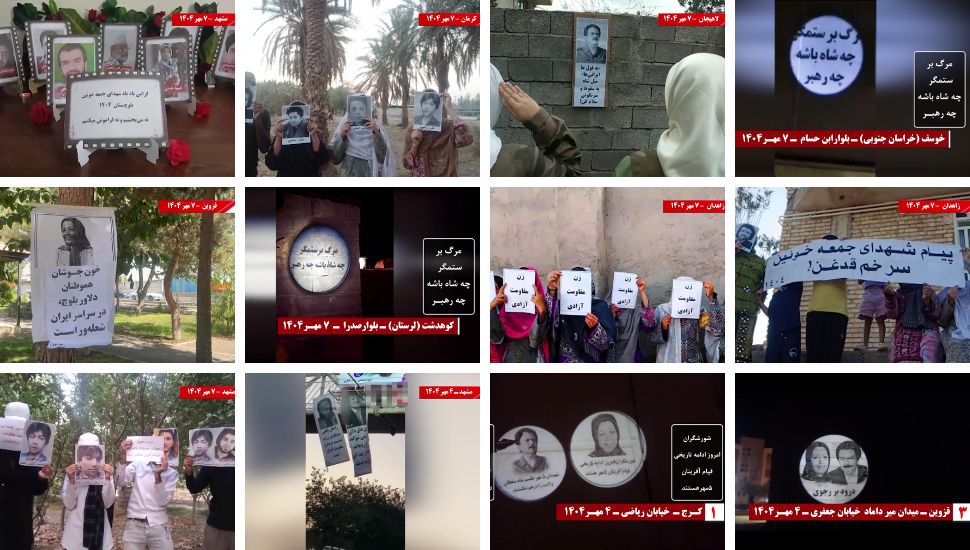 - زاهدان: آکسیون مردان دلاور بلوچ با پیام شهدای جمعه خونین: سرخم قدغن. قسم به خون یاران ایستادهایم تا پایان، مرگ بر خامنهای درود بر رجوی، مرگ بر ستمگر چه شاه باشه چه رهبر