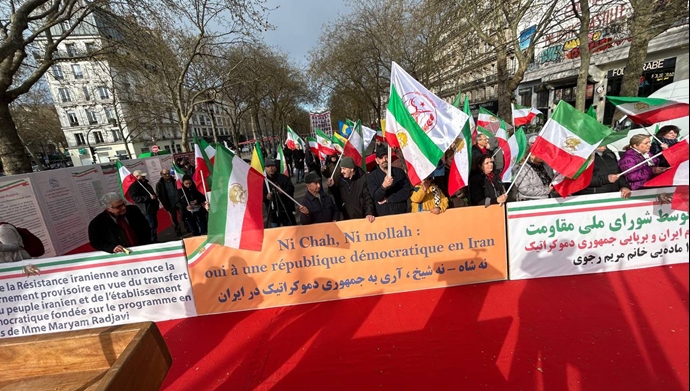 پاریس - تظاهرات ایرانیان آزاده در حمایت از اعلام دولت موقت توسط شورای ملی مقاومت ایران - ۲۳ اسفند ۱۴۰۴