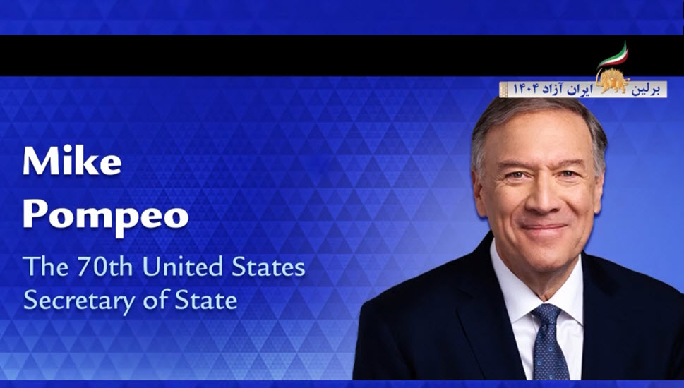مایک پمپئو وزیر خارجهٔ پیشین آمریکا در تظاهرات برلین ۱۸بهمن ۱۴۰۴: