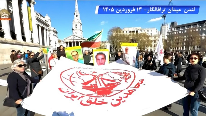 یاران شورشگر و حامیان مقاومت مردم ایران در لندن - میدان ترافالگار و هلند، لاهه در مقابل سفارت رژیم تجمع کرده با شعارهای:
