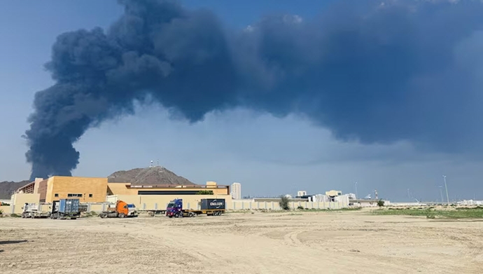 خبرگزاری رویترز گزارش داد که بخشی از عملیات بارگیری محمولههای نفتی در بندر فجیره در امارات متحده عربی، در پی سقوط قطعات یک پهپاد و وقوع آتشسوزی متوقف شده است.