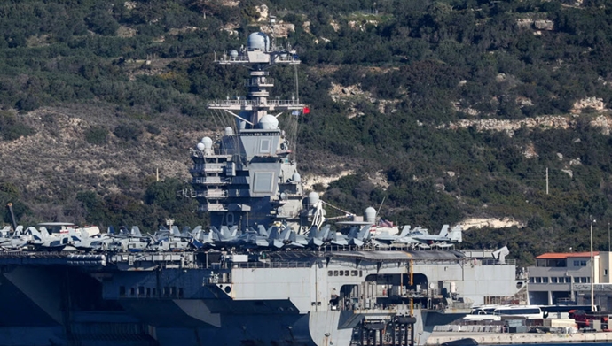 جنگنده‌ها بر روی عرشه ناو «یواس‌اس جرالد آر. فورد» در بندری در جزیره کرت یونان - عکس از آرشیو