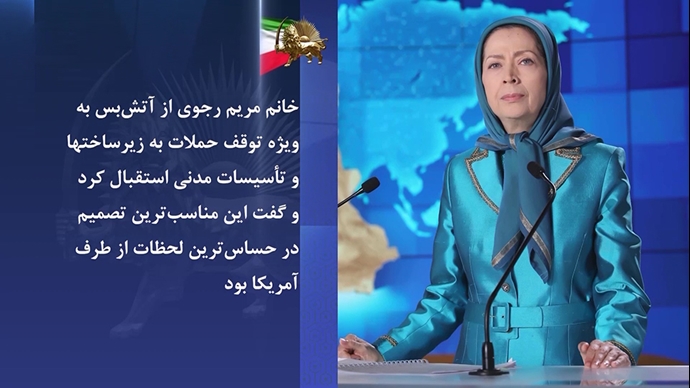 پرزیدنت مقاومت ایران به‌ویژه از تعلیق حملات علیه زیرساختها و اهداف غیرنظامی در کشورش قدردانی کرد.