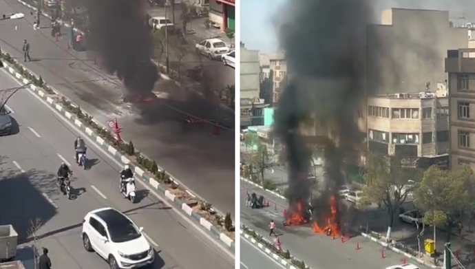 ویدئوهای منتشر شده در روز سهشنبه ۲۶ اسفند، صحنههایی از حمله به یک ایست بازرسی در خیابان پیروزی تهران را نشان میدهد.