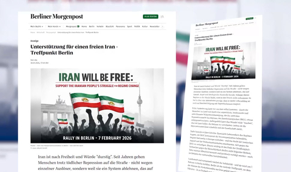 هموطنان آزاده را به شرکت در تظاهرات۱۸ بهمن (۷ فوریه) در برلین فرا می‌خوانیم تا بانگ بلند کاروان شهیدان و پیام‌آور شورشگران برای آزادی و صدای رسای زندانیان سیاسی باشند.
