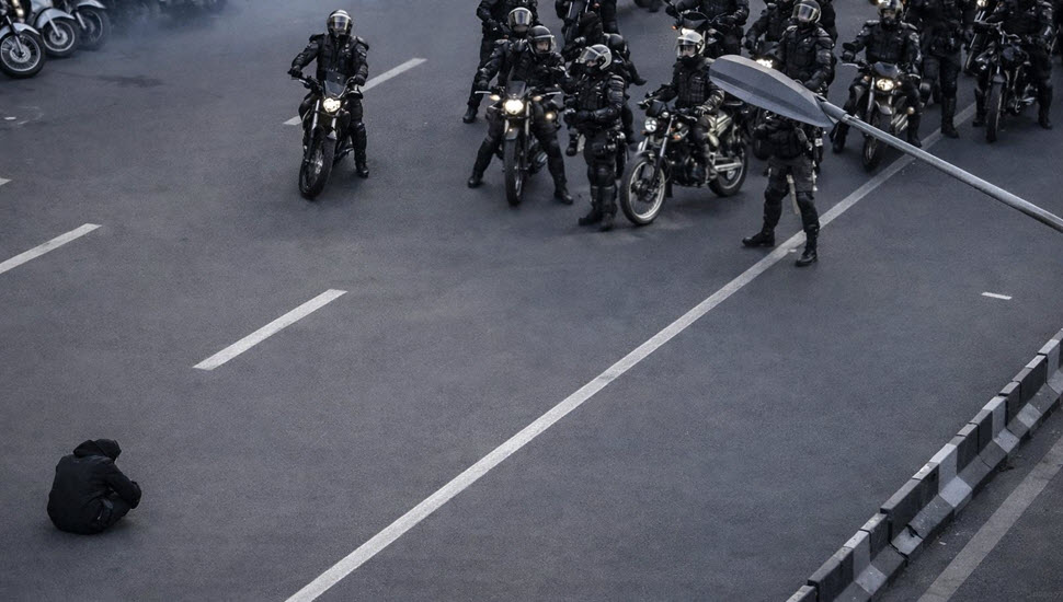 تصویری از مقاومت مردم و جوانان در مقابل وحوش خامنهای در قیام ۱۴۰۴