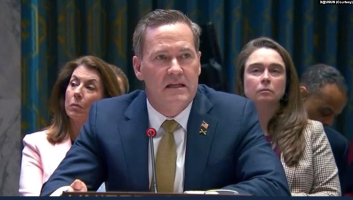 مایک والتز، سفیر آمریکا در سازمان ملل متحد، روز جمعه اول اسفند در گفتگویی با هیو هیویت که در حساب فارسی وزارتخارجه آمریکا بازنشر شد، پیامی صریح به رژیم ایران داد و تأکید کرد «ارتش ما قویترین ارتش جهان است. ما میتوانیم در هر زمان و هر مکان در سراسر جهان حضور داشته باشیم و عملیات انجام دهیم».