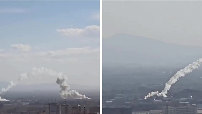 تصاویری که روز ۱۴ فروردین منتشر شده نشان می‌دهد که یک موشک پس از شلیک از نقطه‌ای در تهران و احتمالاً به‌دلیل نقص فنی در نقطه‌ای دیگر سقوط می‌کند.