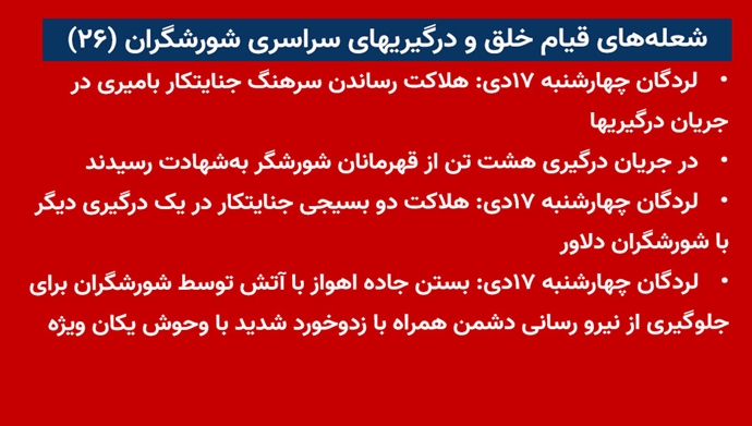 لردگان چهارشنبه ۱۷ دی: هلاکت رساندن سرهنگ جنایتکار بامیری در جریان درگیریها
