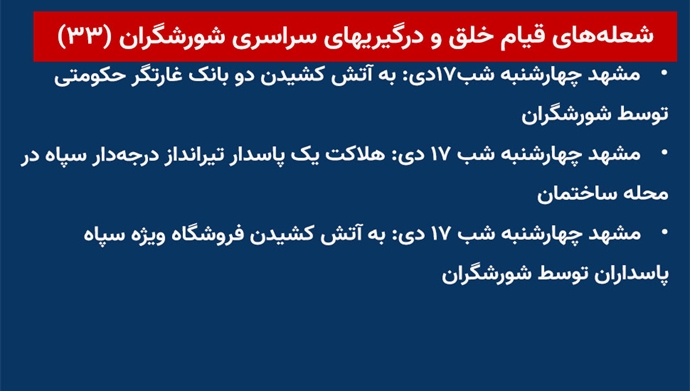 - مشهد چهارشنبه شب۱۷ دی: به آتش کشیدن دو بانک غارتگر حکومتی توسط شورشگران