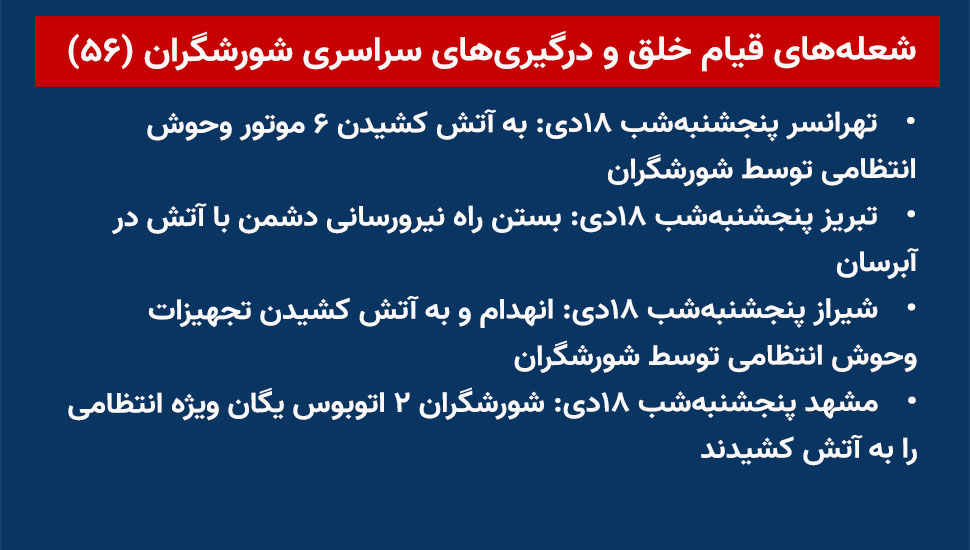 • تهرانسر پنجشنبه‌شب ۱۸دی: به آتش کشیدن ۶ موتور وحوش انتظامی توسط شورشگران