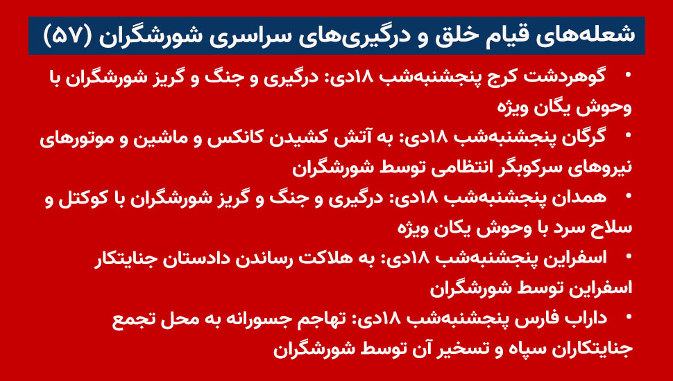 - داراب فارس پنجشنبهشب ۱۸دی: تهاجم جسورانه به محل تجمع جنایتکاران سپاه و تسخیر آن توسط شورشگران
