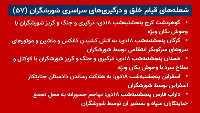 - گرگان پنجشنبهشب ۱۸دی: به آتش کشیدن کانکس و ماشین و موتورهای نیروهای سرکوبگر انتظامی توسط شورشگران