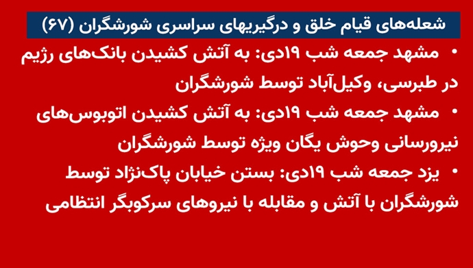 - مشهد جمعه شب ۱۹دی: به آتش کشیدن بانکهای رژیم در طبرسی، وکیلآباد توسط شورشگران
