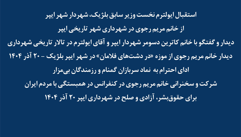 شرکت و سخنرانی خانم مریم رجوی در کنفرانس در همبستگی با مردم ایران برای حقوق‌بشر، آزادی و صلح در شهرداری ایپر ۲۰ آذر ۱۴۰۴