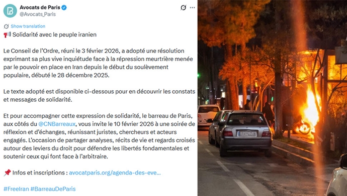 شورای وکلای پاریس روز سهشنبه ۱۴بهمن با صدور بیانیه در مورد وضعیت ایران ضمن ابراز عمیقترین نگرانیها در مورد سرکوب مرگبار انجام شده توسط رژیم ایران خواهان آزادی تمامی زندانیان شدند.