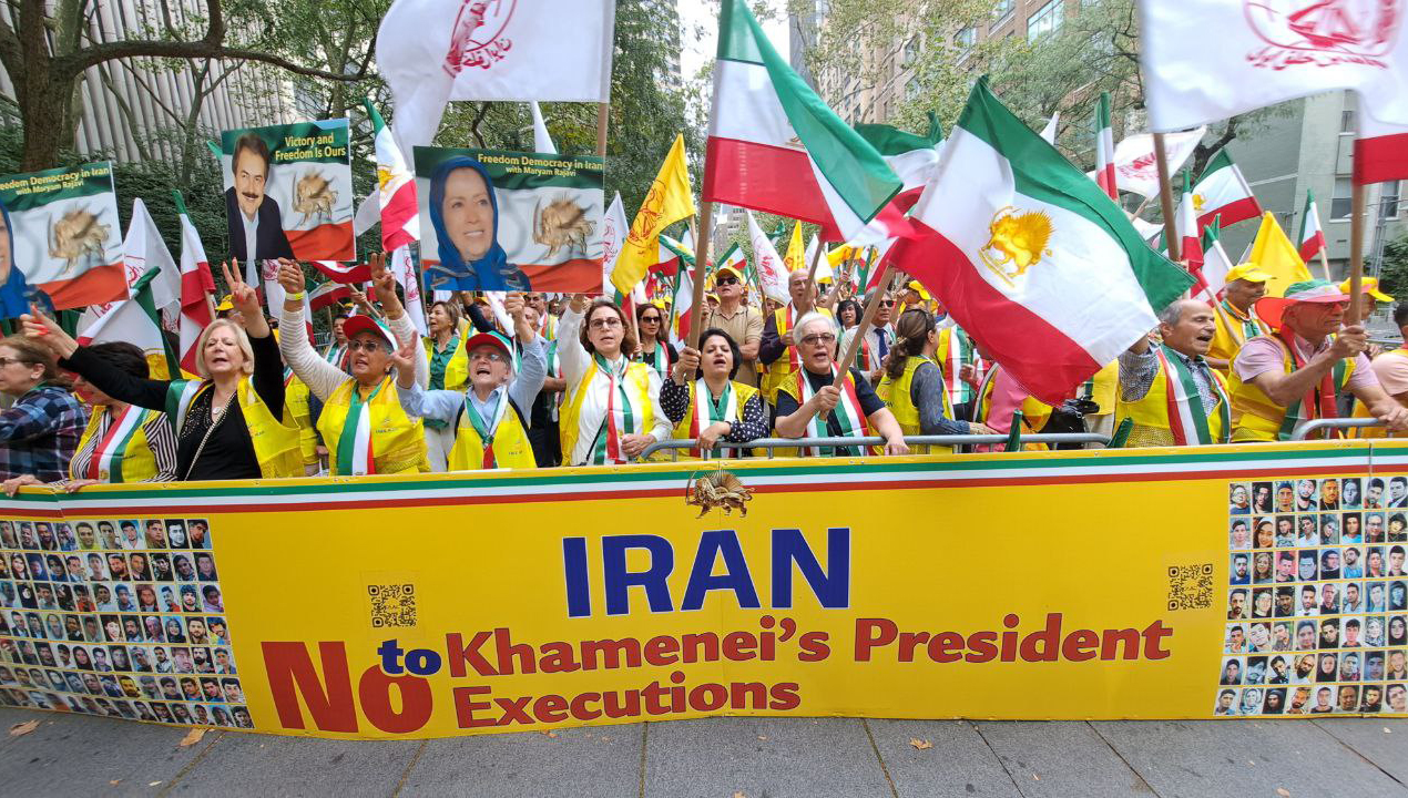 نیویورک - دومین روز تظاهرات ایرانیان آزاده مقابل مقر ملل متحد در اعتراض به حضور پزشکیان