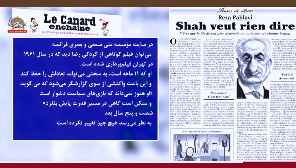 هفته‌نامه فرانسوی کانار آنشنه در مطلبی در ۸بهمن ۱۴۰۴ نوشت: رضا پهلوی؛ شاه دیگر معنایی ندارد تنها «پسرِ پدر بودن»، نیازمند خوش‌بینی در هر لحظه است