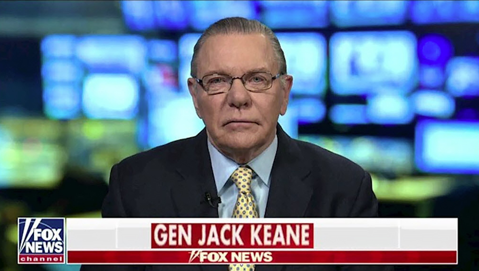 ژنرال جک کین، تحلیلگر ارشد نظامی و رئیس مؤسسه مطالعات جنگ، روز جمعه دهم بهمن در مصاحبه با شبکه خبری فاکس نیوز گفت: «با توجه به شرایط کنونی، گزینه حمله نظامی به ایران بیش از هر زمان دیگری محتمل شده است».