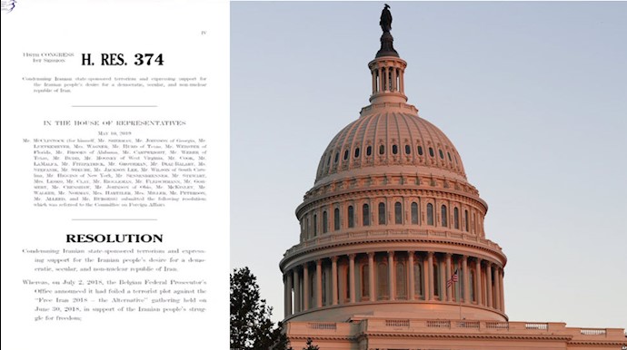 ۱-حملات تروریستی حمایت شده توسط رژیم ایران در گذشته و حال علیه شهروندان آمریکایی، مقامات آمریکا و مخالفان ایرانی، شامل عملیات تروریستی علیه شرکتکنندگان مخالف ایرانی در گردهمایی "ایران آزاد" در سال ۲۰۱۸ در پاریس را محکوم میکند.