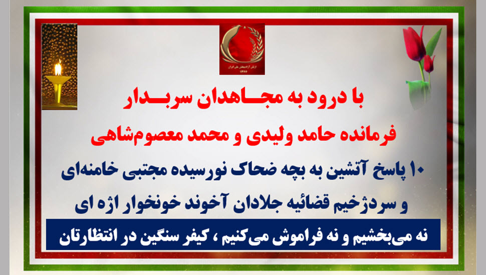 ۱۰ پاسخ آتشین به بچه ضحاک نورسیده مجتبی خامنهای و سردژخیم قضاییه جلادان آخوند خونخوار اژه ای