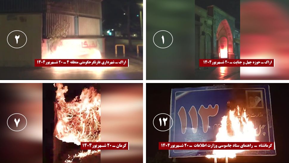 - به آتش کشیدن تصاویر خمینی، خامنهای و سلیمانی در کرمان
