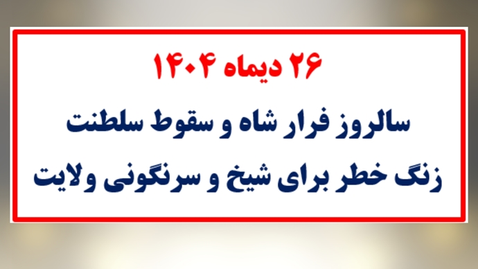 • ۲۶ دیماه ۱۴۰۴سالروز فرار شاه و سقوط سلطنت، زنگ خطر برای شیخ و سرنگونی ولایت