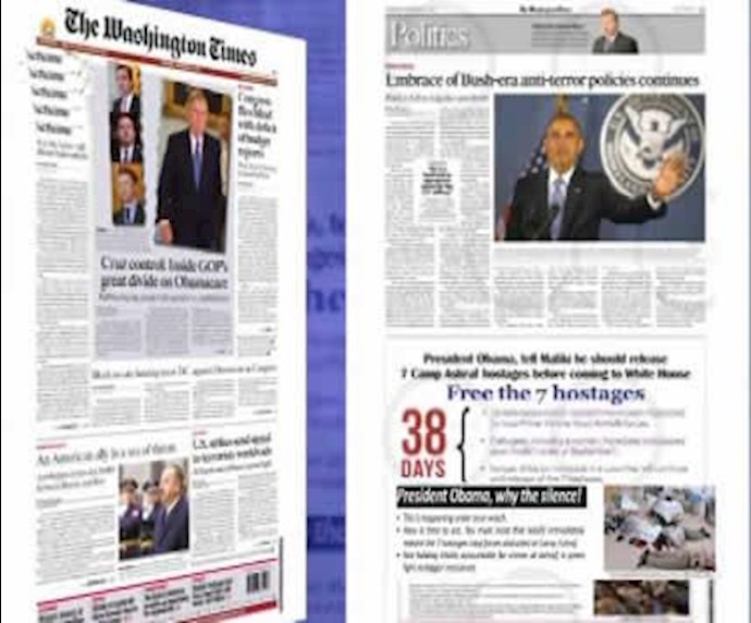 فراخوان در واشینگتن تایمز: آقای اوباما، به مالکی بگویید بایستی قبل از آمدن به کاخ سفید ۷ گروگان اشرف را آزاد کند
