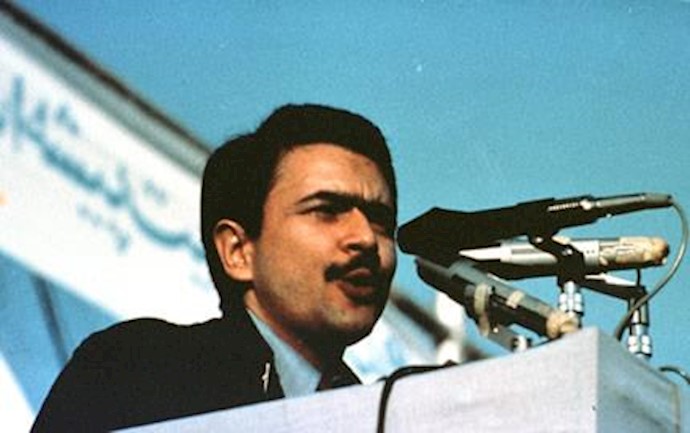 مسعود رجوی حین سخنرانی در فاز سیاسی