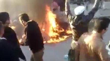 در جریان این تظاهرات همچنین جوانان خشمگین سه دستگاه موتور سیکلت مأموران سرکوبگر نیروی انتظامی را به آتش کشیدند که توجه شما را به تصاویر آ ن جلب می‌کنیم.