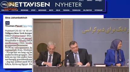 نت آویسن- اسلو- 25فوریه 2014: روز سهشنبه در کنفرانسی در اسلو که رودی جولیانی مهمان افتخاری آن بود، مریم رجوی رئیسجمهور شورای ملی مقاومت سخنرانی کرد و از جمله گفت:" ما خواهان آن هستیم که مقامات اسکاندیناوی علیه نقض حقوقبشر توسط رژیم ایران دست بهعمل بزنند. ما خواهان صلح هستیم و ما خواهان آزادی برای ملتمان هستیم و تا نیل به آن کوتاه نخواهیم آمد.
