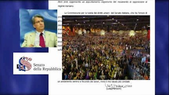 سناتور لوئیجی منکونی رئیس کمیسیون حقوقبشر سنای ایتالیا در آستانهٴ گردهمایی بزرگ مقاومت ایران در پاریس پیامی فرستاد که متن آن از این قرار است: