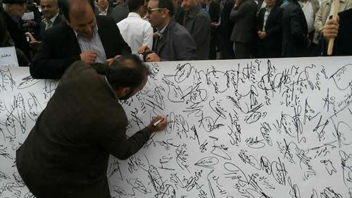 در کرمانشاه معلمان علاوه بر تظاهرات خود، با امضای طوماری با امضای دو هزار نفر به فقر و محرومیت معلمان اعتراض کردند.