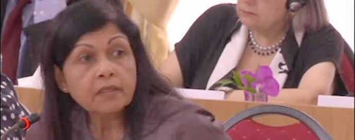 بسم الله الرحمن الرحیم، خانم رجوی، خانم‌ها و آقایانی که برای یک هدف مشترک جمع شده‌اید، سلام بر شما و عصر به‌خیر. خانم رجوی، من این‌جا هستم تا حمایت و همبستگی خود را با شما، شورای ملی مقاومت ایران و ساکنان شجاع کمپ لیبرتی ابراز دارم. من شما را مورد تحسین قرار می‌دهم، به‌خاطر شجاعت، پایداری و فداکاری‌تان جهت تحقق آرزوی مردم ایران برای آزادی و دموکراسی. انشاالله این آرزو به‌زودی محقق خواهد شد. وقتی برای اولین بار داستان اعظم حاج‌حیدری را خواندم، تحت عنوان «بهای انسان بودن»، از آشنایی با سرکوب نهادینه و رفتار غیرانسانی که زنان در ایران از آغاز انقلاب «اسلامی» با آن روبه‌رو بوده‌اند، شوکه شدم. این کتاب همچنین آگاه کرد نسبت به سرکوب بی‌حساب و کتاب و کشتار فراقضایی مردان و زنان عضو جنبش اپوزیسیون مردمی سازمان مجاهدین خلق ایران. از این هولناک‌تر شنیدن مصونیتی است که از طرف دستگاه سازمان ملل، آمریکا و حتی اتحادیه اروپا در موضوع تضمین امنیت و حفاظت کمپ لیبرتی و تضمین حقوق‌بشر بنیادین برای ساکنان این کمپ نشان داده شده است. من این‌ را از کتاب «داستان ناگفته کمپ اشرف» به‌قلم طاهر بومدرا دریافتم که رئیس دفتر حقوق‌بشر یونامی از 2009 تا 2012 بود. من متوجه شدم که آقای بومدرا امروز در این‌جا در میان ما است. با داشتن آگاهی از چنین رفتار غیرعادلانه و بی‌رحمانه در برابر افراد آزادیخواه ایران، به‌خصوص زنان، من بر این باورم که بنیادگرایی مترادف با سرکوب زنان است، چرا که حقوق زنان را تحلیل می‌برد، آنها را از محیط عمومی خارج می‌سازد و با آنها به‌عنوان شهروندان دسته‌دوم رفتار می‌کند. سایر ویژگی‌های بنیادگرایی، عدم بردباری، سرکوب اجتماعی و تعرض است. لذا بر عهدهٴ همهٴ ما است که بر روی رژیم ایران فشار بیاوریم تا به گسترش بنیادگرایی به خارج از مرزهای ایران خاتمه دهد. این به مسأله‌یی اضطراری تبدیل شده است. اما نکته مثبت این است که من از رشد محبوبیت مقاومت ایران و تجمعهای عظیمی که شما خانم رجوی و شورای ملی مقاومت ایران در همه‌جا بسیج می‌کنید، امیدوار شده‌ام. این علامت روشنی است که رژیم در حال از دست‌دادن سلطه خود است. مردم آزادیخواه و مدافعان حقوق‌بشر از سراسر دنیا، خانم رجوی، با شما هستند. لذا ما می‌توانیم و باید رژیم ایران را تغییر دهیم و آزادی، دموکراسی و برابری را برقرار کنیم. چه لحظهٴ افتخار آمیزی برای ما زنان خواهد بود که خانم رجوی، شما را به‌عنوان رئیس‌جمهور یک ایران دموکراتیک ببینیم. متشکرم.