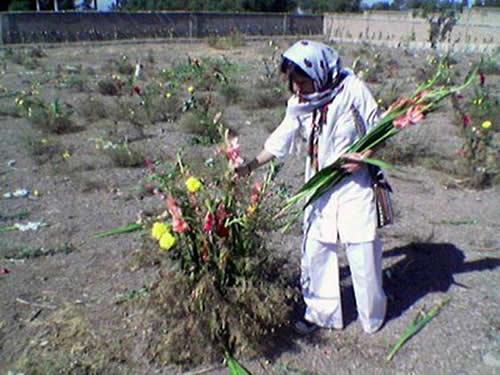 چند نفر گلها را کنار دیوار گذاشتند، بعضیها گلها را روی زمین خواباندند، از دور نگاه میکردم، توی دلم میگفتم خاله تو کجایی؟ بعد دیدم یک مادر هم دارد همین را برای پسرش میگوید، یکی دیگر یکی دیگر... پدر پیری که آنجا بود نزدیکم آمد و گفت: دخترجان همه جا هستند، شهید که جا ندارد، این نشانهاش است، تو هر جا میخواهی گلت را برایش بگذار او خودش میآید برمیدارد، اصلاً شاید بهتر باشد همه جا را پر گل کنیم و همین کار را کردیم، انبوه گل همه جا را پر کرده بود، همه سطح خاوران گل بود، من هر جا مادرها را میدیدم خیلی دلم میگرفت، و خیلی دلم میسوخت، میآمدند و عکس بچههایشان را از روی سینهشان برمیداشتند و روی سینه خاک میگذاشتند.