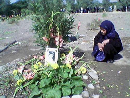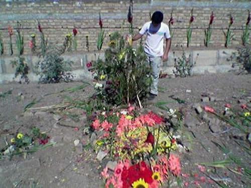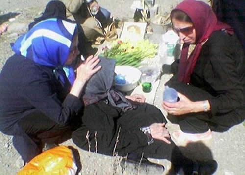 و یک مادر که رفت کنار عکس پسرش نشست همانجا سرش گیج رفت و افتاد، من و مادرم رفتیم برایش آب و گلاب بردیم و هوشش آوردیم، مادر هربار که اینجا میآید فشارش بالا میرود و سرش گیج میرود و زمین میخورد.