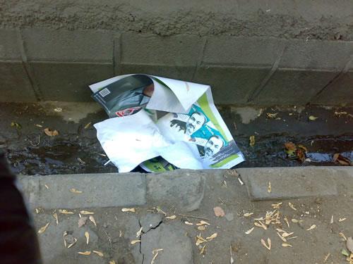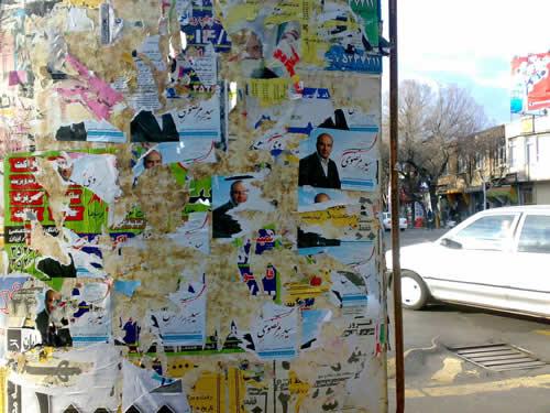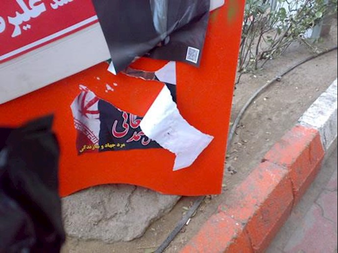 تبریز - از روز اول اسفند هم زمان با شروع تبلیغات نمایش انتخابات توسط باندهای حکومتی، مردم و جوانان تبریز نفرت خود را با انهدام بنرها و پاره کردن عکسها نسبت به آنان ابراز کردند.