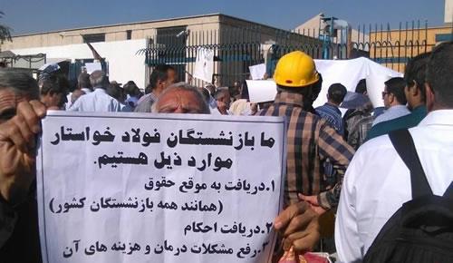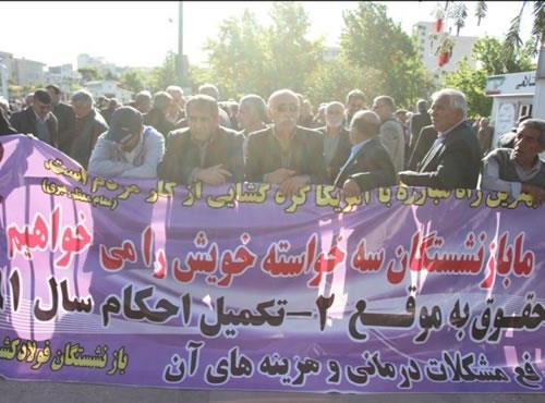 بازنشستگان صنعت فولاد کشور در اعتراض به دریافت نکردن حقوقهای خود صبح دوشنبه 30 فروردین 95 و برای دومین روز متوالی مقابل مجلس شورای اسلامی تجمع کردند.