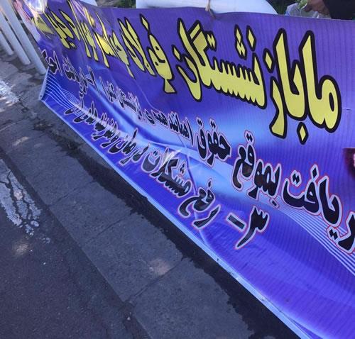 قابل توجه است قبل از تجمع مجدد بازنشستگان مأموران سرکوب نیروهای انتظامی کلیه پلاکاردهایی را که بازنشستگان در محل نصب کرده بودند را جمعآوری کرده و از بین بردند اما بازنشستگان دست نوشتههایی راه همراه داشتند.