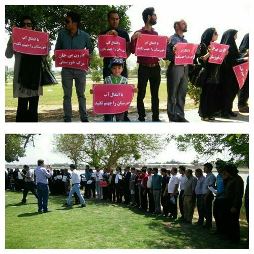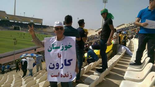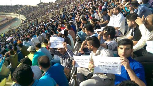 جمعی از مردم اهواز در اعتراض به تغییر مسیر آب کارون و احداث سد بهشت آباد روز جمعه 24اردیبهشت 95 در ورزشگاه غدیر حین تماشای مسابقه فوتبال دست به اعتراض زدند. همزمان جمعی دیگر از مردم اهواز در کنار کارون زنجیره انسانی تشکیل دادند.