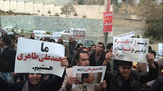جمعی از شاگردان و طرفداران محمدعلی طاهری، روز یکشنبه، ۱۶ خرداد 95، در اعتراض به ادامه بازداشت غیرقانونی این زندانی سیاسی جنب شکنجهگاه اوین تجمع کردند.